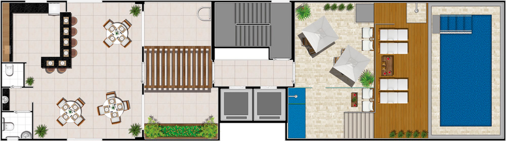Conheça também as exclusivas coberturas duplex e apartamentos garden. É ainda mais espaço para quem está vendo a família aumentar.